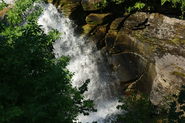 We decided to stay in Canajohari, we’re in no hurry and the next few days are going to be in the mid to upper 90s and we have electricity here. We are going to leave the boat in Brewerton on July 6 to fly home for about 10 days, so we have time to slow down and play. Stan and I left early this morning on our bikes to find Wintergreen Park and the Canajohari Falls...we wanted to get out before the weather got too warm. It was only two miles to the park, but it was all uphill. It was an incredible workout...I thought I might not make it. We're flatlanders, a dip in the road is a hill to us...these hills felt like mountains! Once we made it to the park we hiked a couple of miles looking around and getting to the falls. I'm glad we made the trip; it was nice getting the exercise and seeing something different. The park and river are beautiful. The best part of the adventure was the ride back to the dock; it was all downhill...that was fun. On our way back we ran into Pam and Donny on their way up. While Pam was at the park she found out the best part of this river is in town about 1/2 mile from the boat. It's called the Boiling Pot...the river bottom is shale and granite and there are large holes where the water swirls around. Pam checked it out and then she and I spent the afternoon there, it was a great place to be on a hot day. It's truly a little piece of paradise.