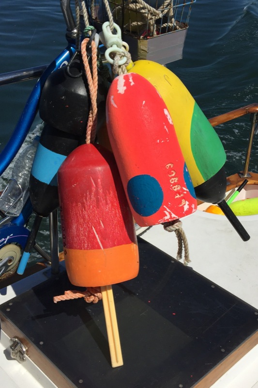 Maine has over 5,900 licensed lobstermen, they work about 3 million lobster traps and more than 30,000 are lost every year and their distinctly colored buoys wash up on shore. Each boat has their own unique color for their buoys and the colors have to be displayed on their boat. These colorful buoys help the lobstermen locate their traps.